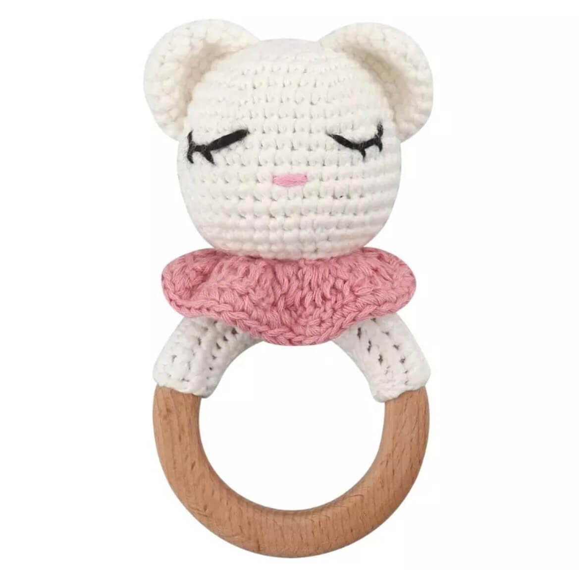 100% minőségi pamut fonalból. Minden kiegészítője (szeme, füle, gallérja, masnija) fonalból készültek, így teljes mértékben bababarát. Belül egy kis csörgő helyezkedik el, ami rázáskor hangot ad ki. Válassz hozzá illő cumiláncot és marokrácsát is! Nézd meg a szetteket!